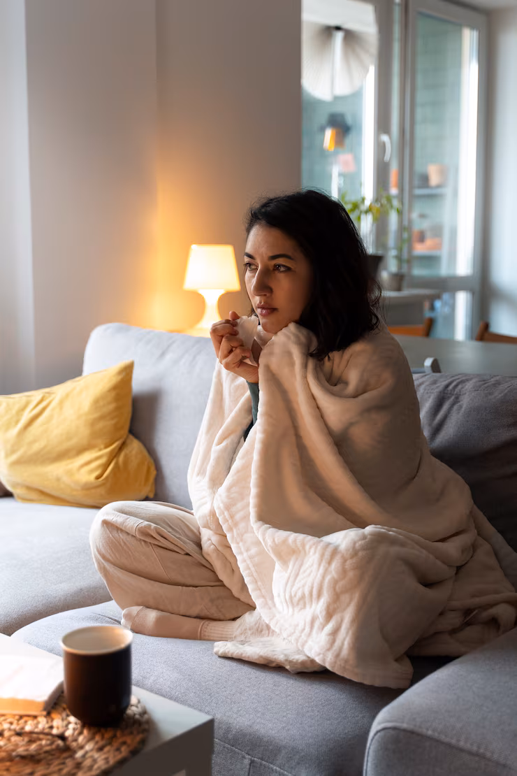 Pilih tekstil hangat seperti selimut rajut atau bantal empuk untuk menambahkan unsur kenyamanan tanpa membuat ruangan terasa penuh.